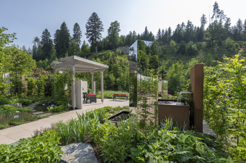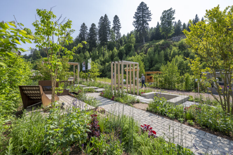 Das Highlight in den Forbachgärten sind die inspirierenden Schaugärten von vier Garten- und Landschaftsbaubetrieben der Region rund um Freudenstadt und Baiersbronn. Der fünfte, nicht weniger spannende Garten, wurde als Nachwuchsprojekt von Azubis aus 12 Ausbildungsbetrieben der Region Nordschwarzwald nach dem Plan einer Werkstudentin ausgeführt.
