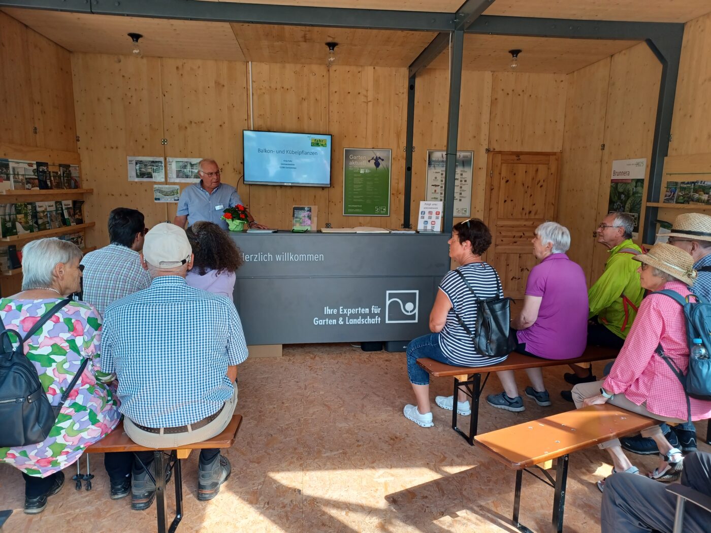Fritz Fahr von Fahr GmbH Garten- und Landschaftsbau aus Dornstetten hielt am 07.08.2025 im Rahmen der “Garten aktuell” Reihe am Treffpunkt Grün der Gartenschau Tal X 2025 in Freudenstadt und Baiersbronn einen Vortrag über die Pflege und Auswahl von Balkon- und Kübelpflanzen.