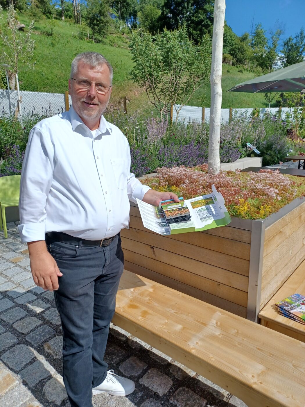 Dieter Schenk vom Kompetenzzentrum Gebäudebegrünung und Stadtklima e. V. (KGS) hielt am 10.07.2025 im Rahmen der “Garten aktuell” Reihe am Treffpunkt Grün der Gartenschau Tal X 2025 in Freudenstadt und Baiersbronn einen Vortrag über das Multi-Talent Dachbegrünung. Der Sitz des KGS ist in der DEULA in Kirchheim/Teck, der Verband Garten-, Landschafts- und Sportplatzbau Baden-Württemberg e.V. ist einer von mehreren Partnern des KGS.