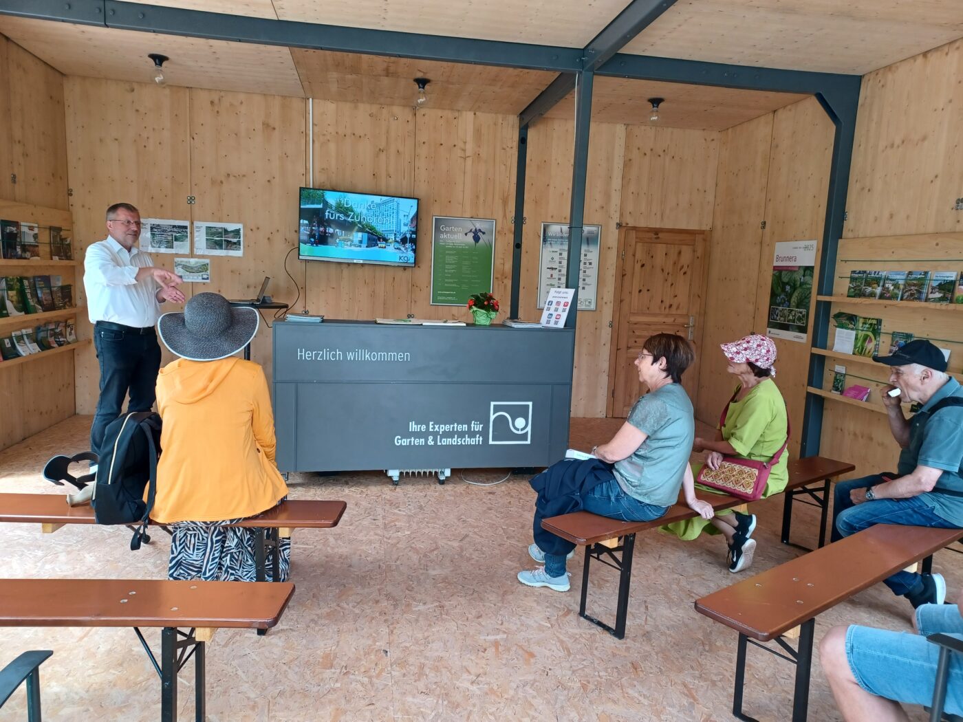 Dieter Schenk vom Kompetenzzentrum Gebäudebegrünung und Stadtklima e. V. (KGS) hielt am 10.07.2025 im Rahmen der “Garten aktuell” Reihe am Treffpunkt Grün der Gartenschau Tal X 2025 in Freudenstadt und Baiersbronn einen Vortrag über das Multi-Talent Dachbegrünung. Der Sitz des KGS ist in der DEULA in Kirchheim/Teck, der Verband Garten-, Landschafts- und Sportplatzbau Baden-Württemberg e.V. ist einer von mehreren Partnern des KGS.